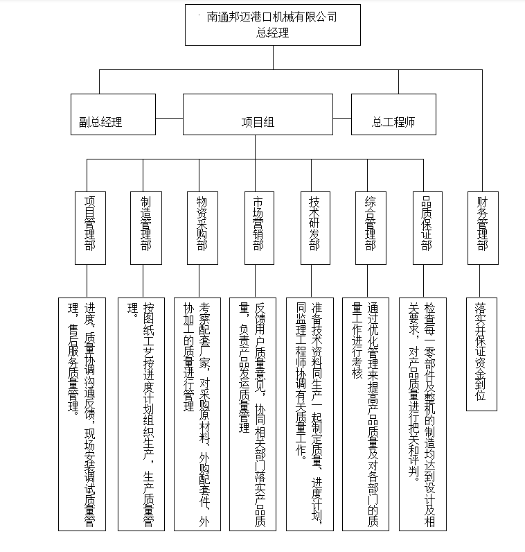 我公司質量保證體系健全。本公司的設備制造質量體系是董事長負責制,嚴格按ISO9001質量認證體系運行和按照《質量控制手冊》的要求進行,實行質量一票否決制。